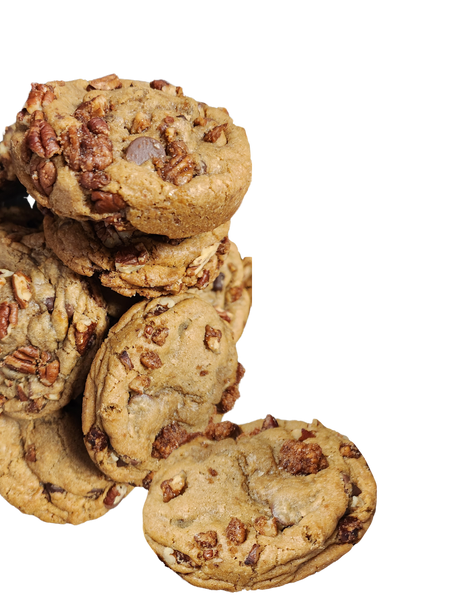 The BEST Chocolate Chip cookie your mouth will ever explore. Our cookie dough is infused with brown butta, loaded of chocolate chips and rum soaked pecans. It is STUFFED with our homemade caramel pecan turtle candy.